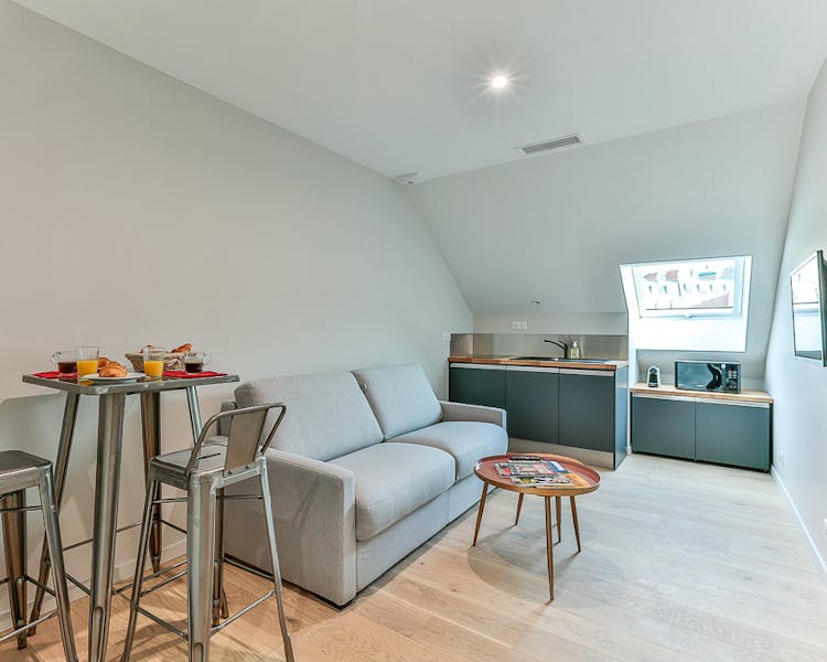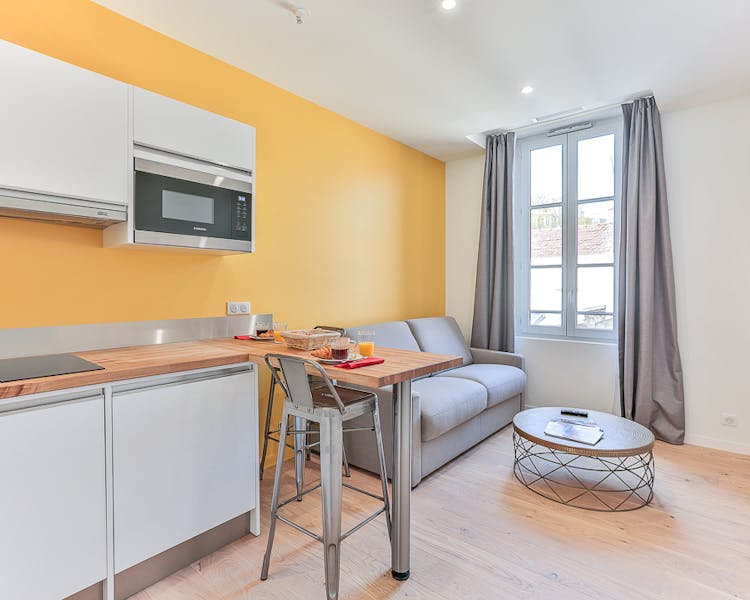 Ideally located in the heart of Dijon, the Villa 14 residence offers apartments in a beautiful old building completely renovated in 2020. The accommodations benefits from a refined decoration and a recent equipment to best meet your expectations. Each apartment has all the modern comforts for your tourist or professional stay with, among other things: high-end bedding, air conditioning, wifi, and an equipped kitchen ... Our apartments are all located in the same building at 14 Mariotte street spread over 4 floors overlooking the street or a private interior courtyard.